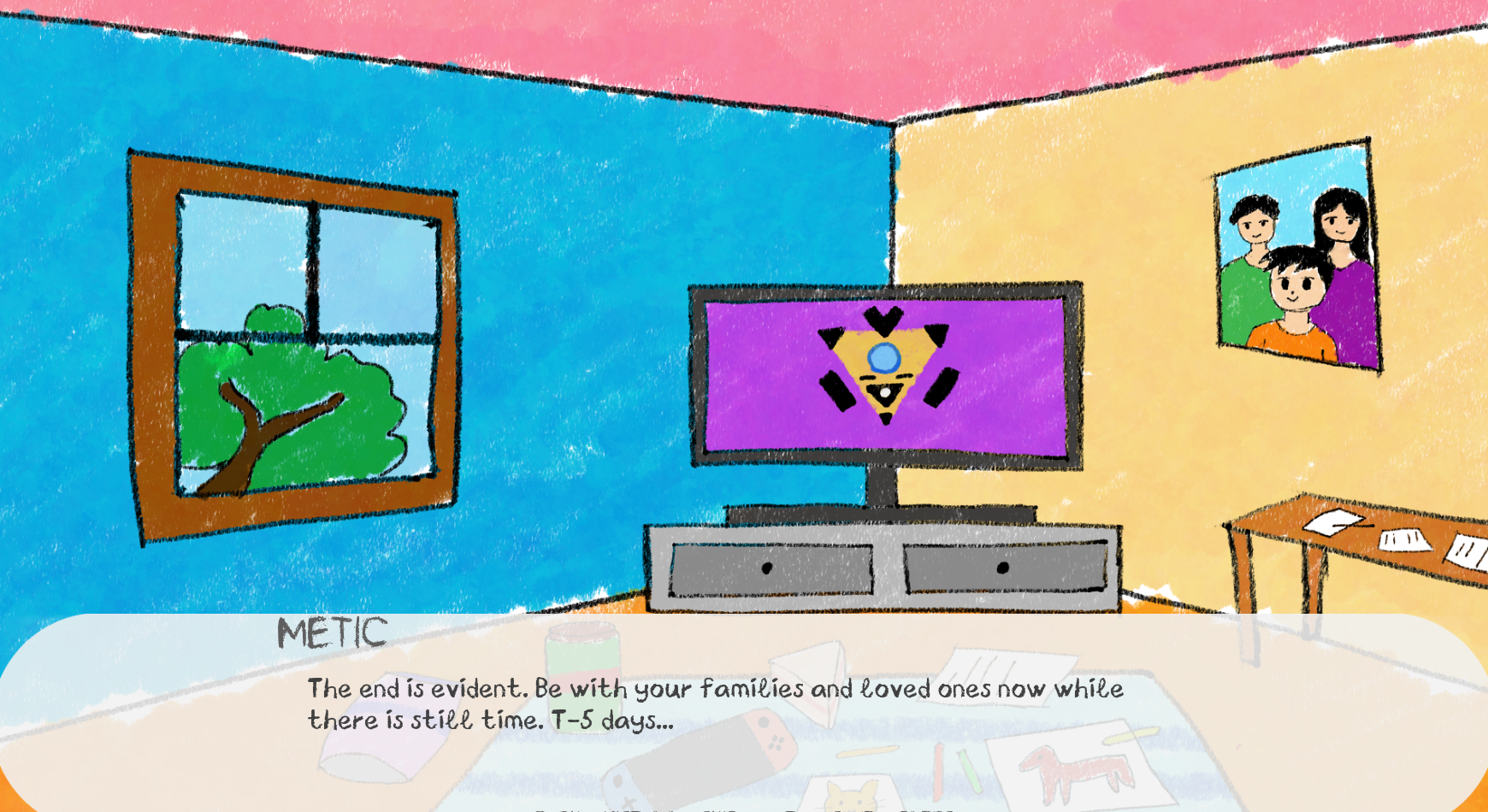 With hand-drawn, childlike artwork and professional voice acting, this game captures both the innocence and fear of a young perspective at the end of the world. Through dialogue choices and small but meaningful decisions, you’ll guide how the child copes — shaping their emotions, memories, and ultimately one of several heartfelt endings.